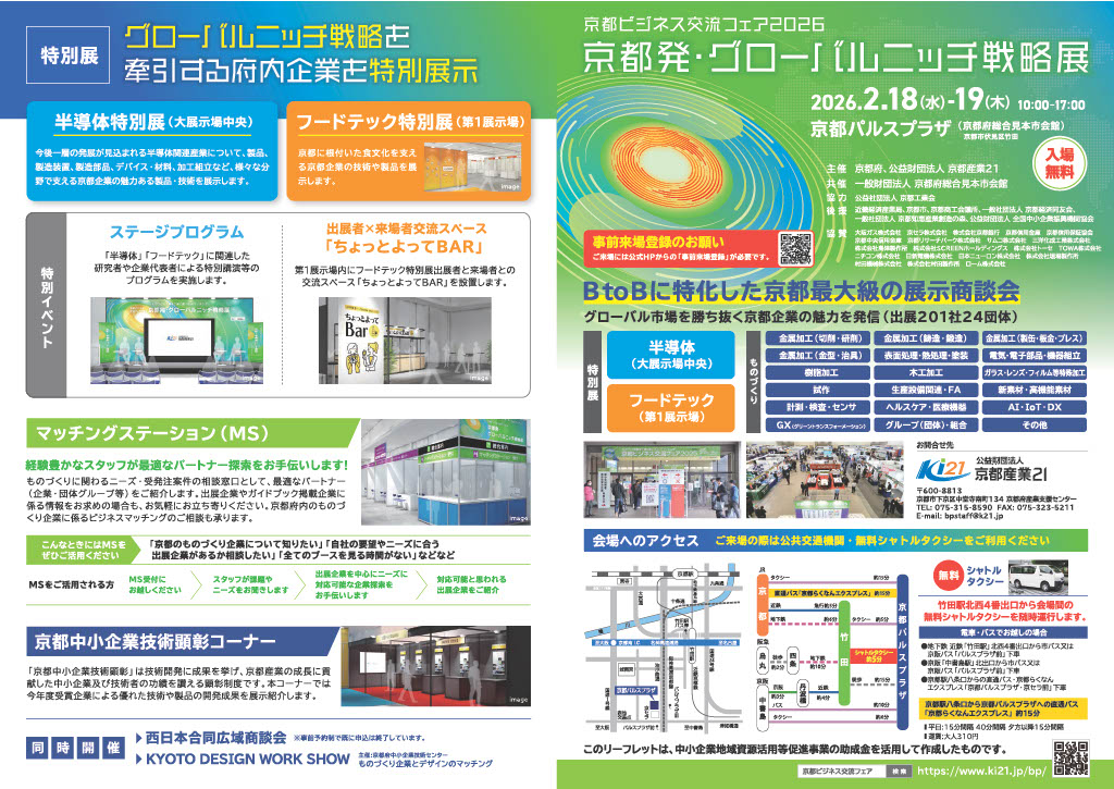 | 主催 | 公益財団法人 京都産業21 一般財団法人 京都府総合見本市会館 |